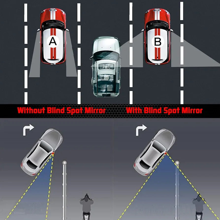 Flexible convex shape of blind spot mirror helps you to forecast the next surroundings when passing or changing lanes.