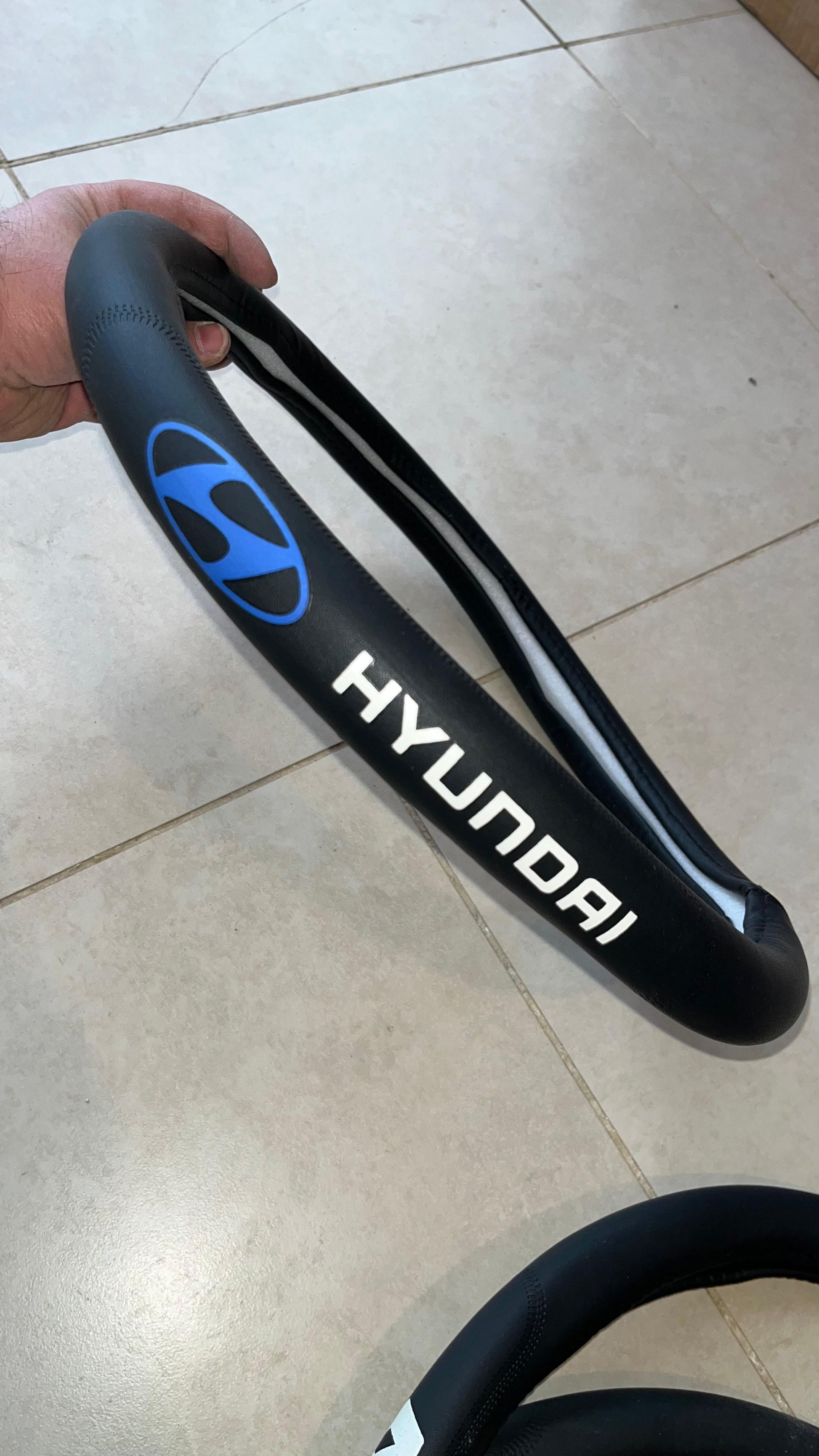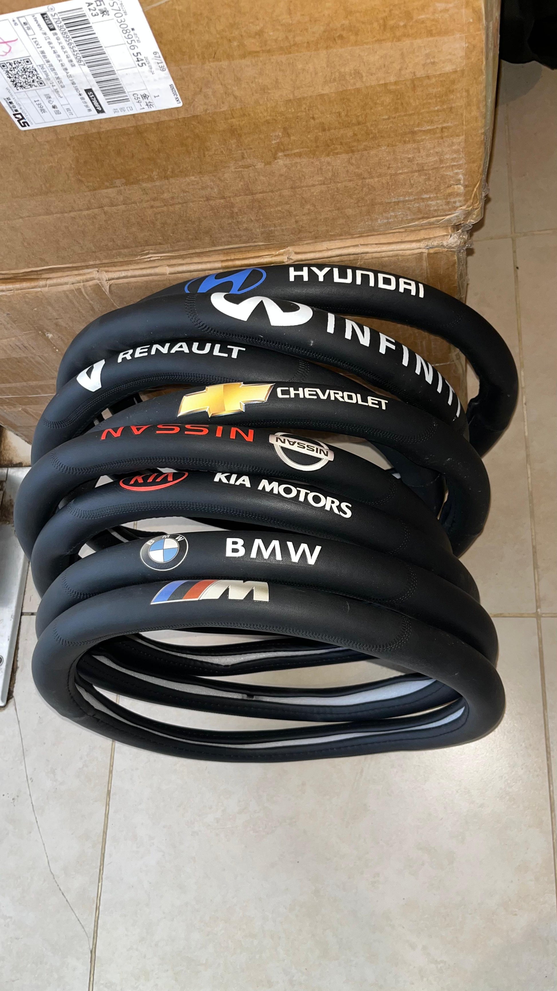 Black Leather Steering Wheel Cover with Custom Car Logo
