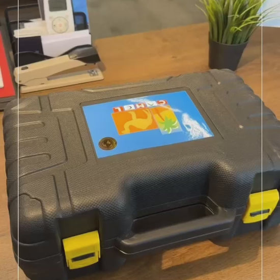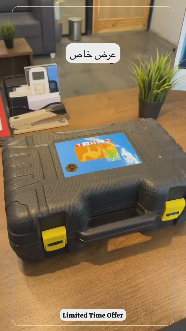 منفخ دوبل بيستون (باسطونين) ممتاز مع شنطة عدة ضرورية بكل سيارة بتتضمن بنسة ، مفك شق ، مفك مصلب ، شفرة و عدة لتصليح الدولاب وبيشتغل على فيشة القداحة أو على البطارية