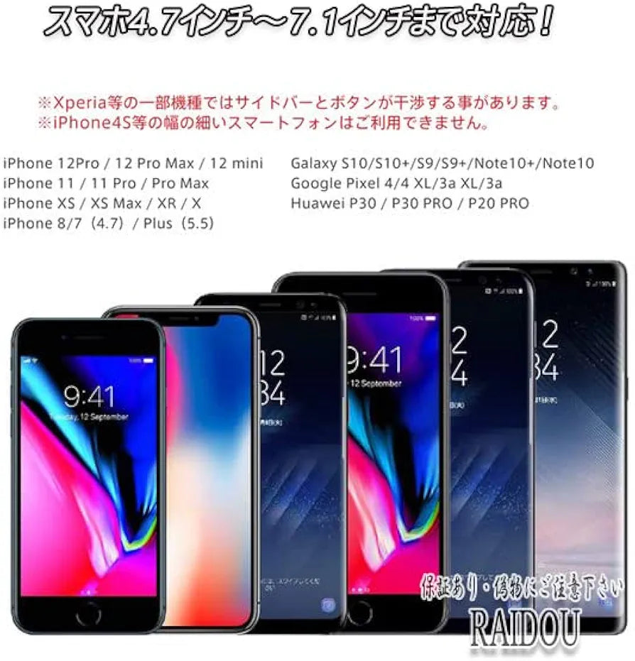 Product Contents: Holder x 1, Arm Suction Cup x 1, Suction Cup Diameter: 2.7 inches (68 mm), Material: ABS (Examples of Compatible Smartphone Models) Compatible with both iPhone and Android *Depending on the accessories you use, the compatible models may not be compatible