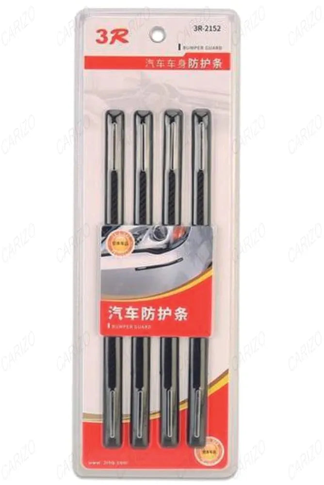 Universal Black & Chrome Anti-Collision Patch Bumper and Door Guard Strip Anti-Scratch Bumper Protector Trim Compatible with All Cars & SUVs (Pack of 4)